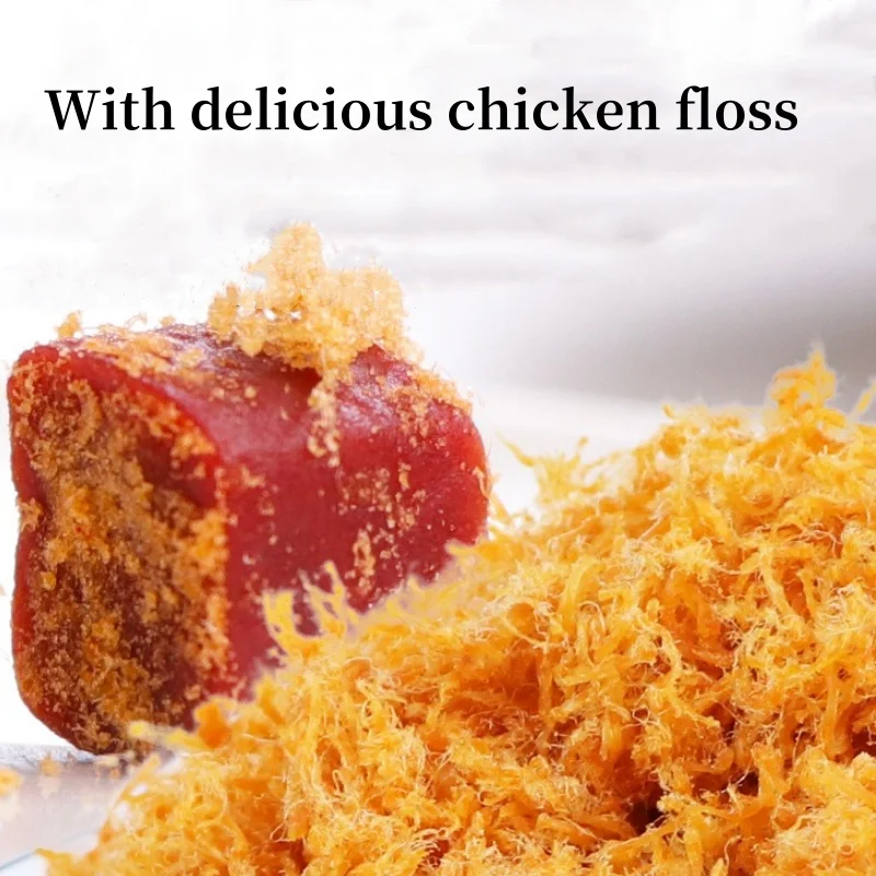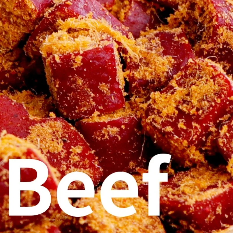 Ingredients: beef, soy protein, starch, chicken floss, glycerin, sorbitol, potassium sorbate