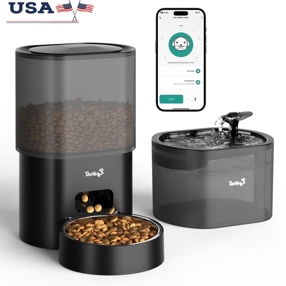 The automatic cat feeder with water dispenser is a convenient solution for managing your cat’s food and water needs. It supports WiFi programming and APP control, so you can easily set the feeding schedule and adjust the amount of food. It also has a voice recording function to call your kitten to eat. Its large capacity design, high-quality materials ensure safety and long-term use. With a circulating fountain water system, your cat can enjoy fresh water at any time. The dual power design allows it to operate stably anytime, so that your cat can get timely care whether it is daily use or traveling. Specification: Rated voltage: DC 5V Rated power: 5W Food type: dry food (0. 2-0. 6in) Feeding device: 10g/portion 12 portions/meal Waterproof level: IP42 Capacity: feeder 3L/ water dispenser 2. 5L Pet type:cat Material: ABS+stainless steel Power supply: Power cord + batteries Product size: Feeder: 7. 09 in *11. 14 in *11. 73 in Water dispenser: 7. 80 in *6. 61 in *5. 04 in Learn More About Us 🐱🐱2 in 1 Cat Feeding Set: 2 in 1 Cat Feeding Set: The Automatic cat feeding set includes an automatic cat food dispenser and a cat water fountain. Even when you’re busy, away, or resting, it ensures your cat receives the right amount of food and water and helps your cat maintain a healthy, structured lifestyle,providing better daily care. ⏰⏰Programmed Timed Feeding: The automatic cat feeder supports 2. 4G WiFi programming. So you can easily set feeding times and portions through a mobile app. It is up to 10 meals per day, with a maximum of 12 portions (10g per portion) each meal, ensuring your cat receives regular and measured feedings. 🧸🧸Personalized Voice Call: With a recording function, you can pre-record your voice to call your cat for meals at feeding time. This helps alleviate any anxiety your cat may feel in your absence and encourages them to eat. ⛲⛲Ample Capacity & Fresh Filtration:With a 3L dry food bin and a 2. 5L water tank, this feeder ensures ample supply for your cats. The top-locking design keeps food fresh for up to 6 months, while dual filtration and a circulating fountain provide clean, appealing water to promote healthy hydration. 🔋🔋Dual Power Supply: The automatic cat feeder operates on both wire and batteries, ensuring continuous operation even during power outages or when you’ re away. It automatically remembers your settings, so you can feed your beloved cats with peace of mind in any situation. Features: Filtration, Lockable, Portable, Portion Controlled, Programmable, Removable Tank, Waterproof Brand: Animal Type: Cat Color: Black Assembled Product Weight: 4. 41 lb Manufacturer Part Number: PS-0006-DG Manufacturer: Assembled Product Dimensions (L x W x H): 6. 89 x 7. 87 x 10. 00 Inches