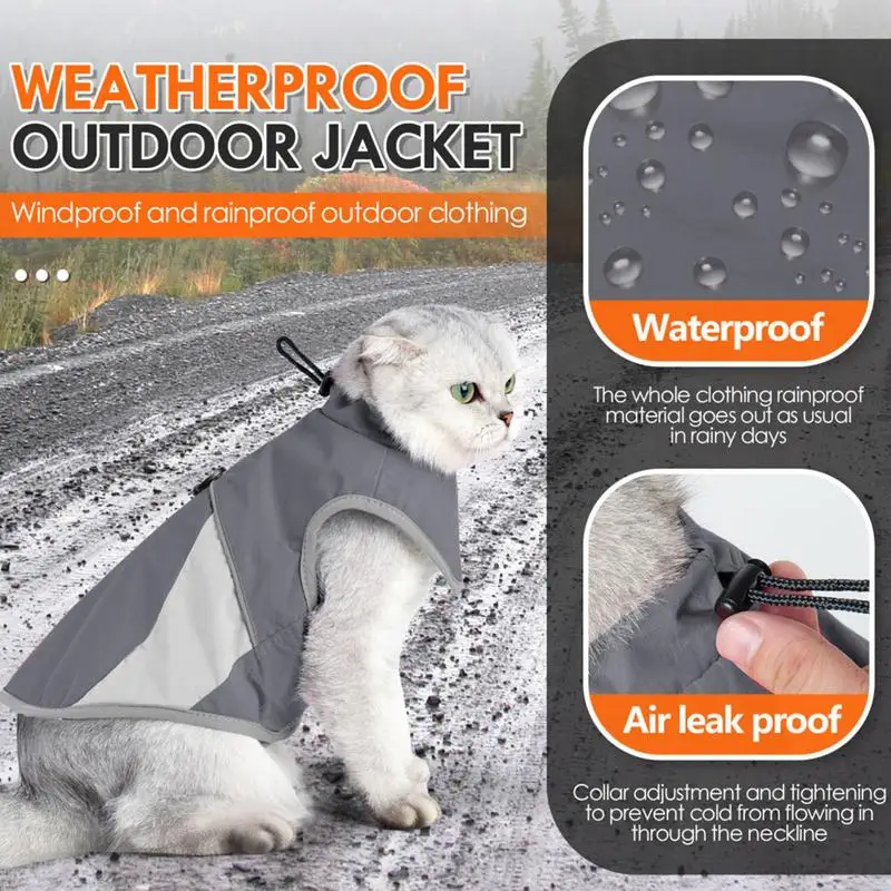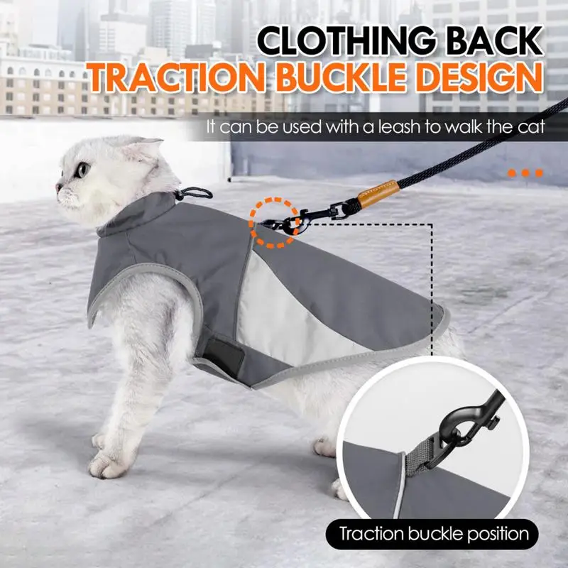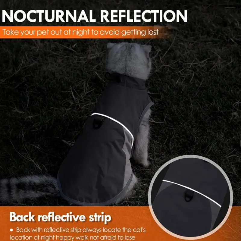 Cat Warm Jacket Security Cat Clothes Pet Cat Coats Cat Waterproof Windproof Outfit Adjustable High Collar Pet Reflective Costume