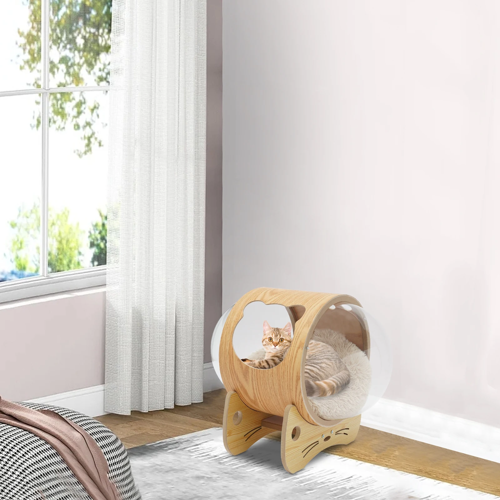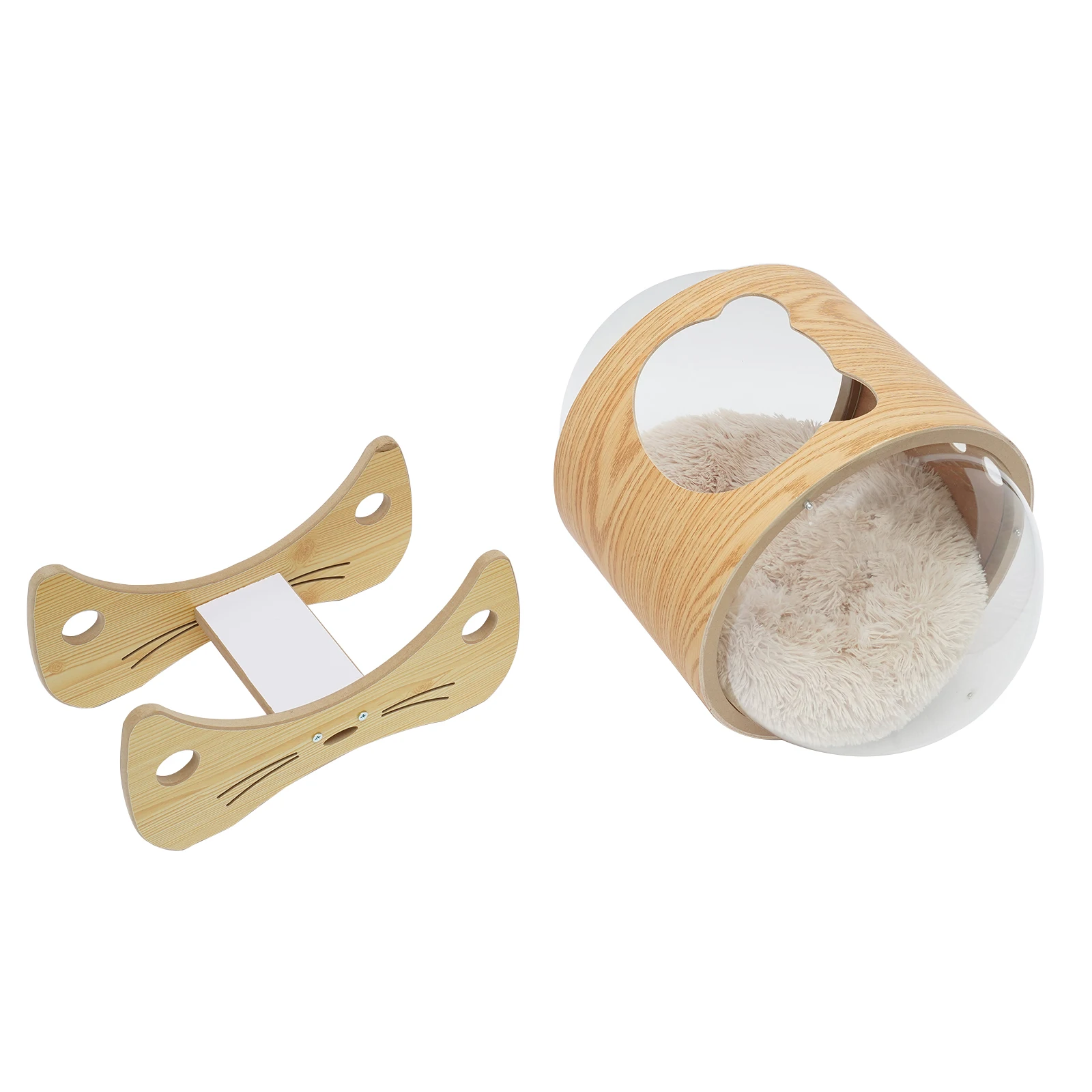 The warm bed can bring cats a sense of security, and they can immerse themselves in their own small world. Our cat bed capsule can do this very well. Made of high-quality wood, cashmere, and acrylic, and adopting exquisite veneer covering craftsmanship, this item lays the foundation for your long-term use. The unique design makes it better care for your cats and lets them grow up more happily.