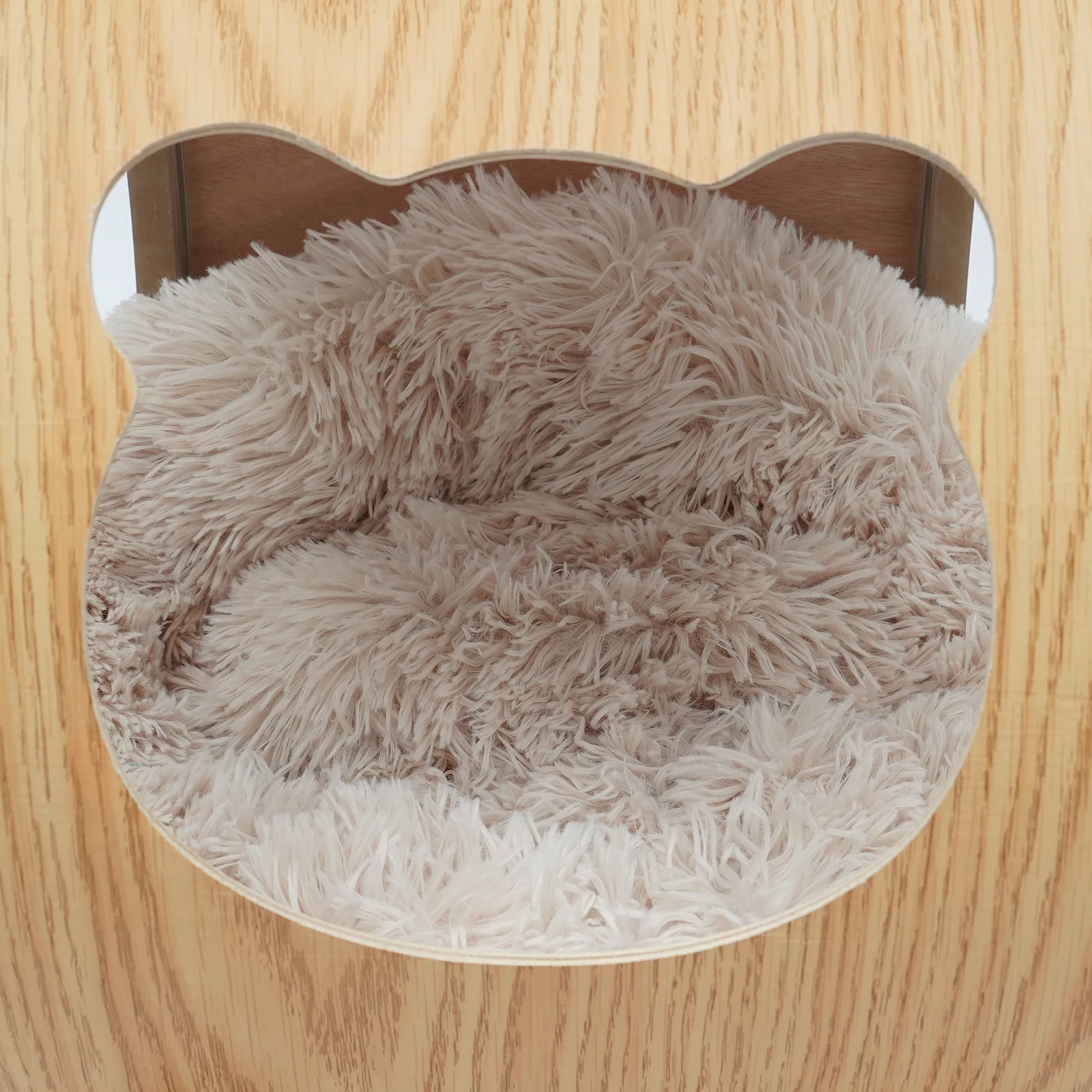 Careful Design: The wraparound wooden frame caters to the cat's natural hiding instinct, which helps the cat to relieve anxiety and provides the privacy they need. The four ventilation holes help to promote air circulation and prevent stuffiness. And the 3.94inch thick cashmere cushion is very fluffy to bring warmth for cats.