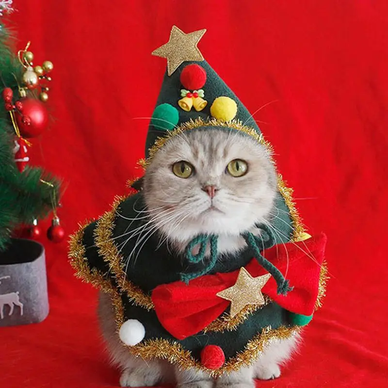1.Festive Spirit: Get your pets holiday-ready with our cute cat Christmas scarf featuring small balls the edge, a green collar, and a red bow with a star-shaped design. Great for everyday wear or a cute Christmas accessory
