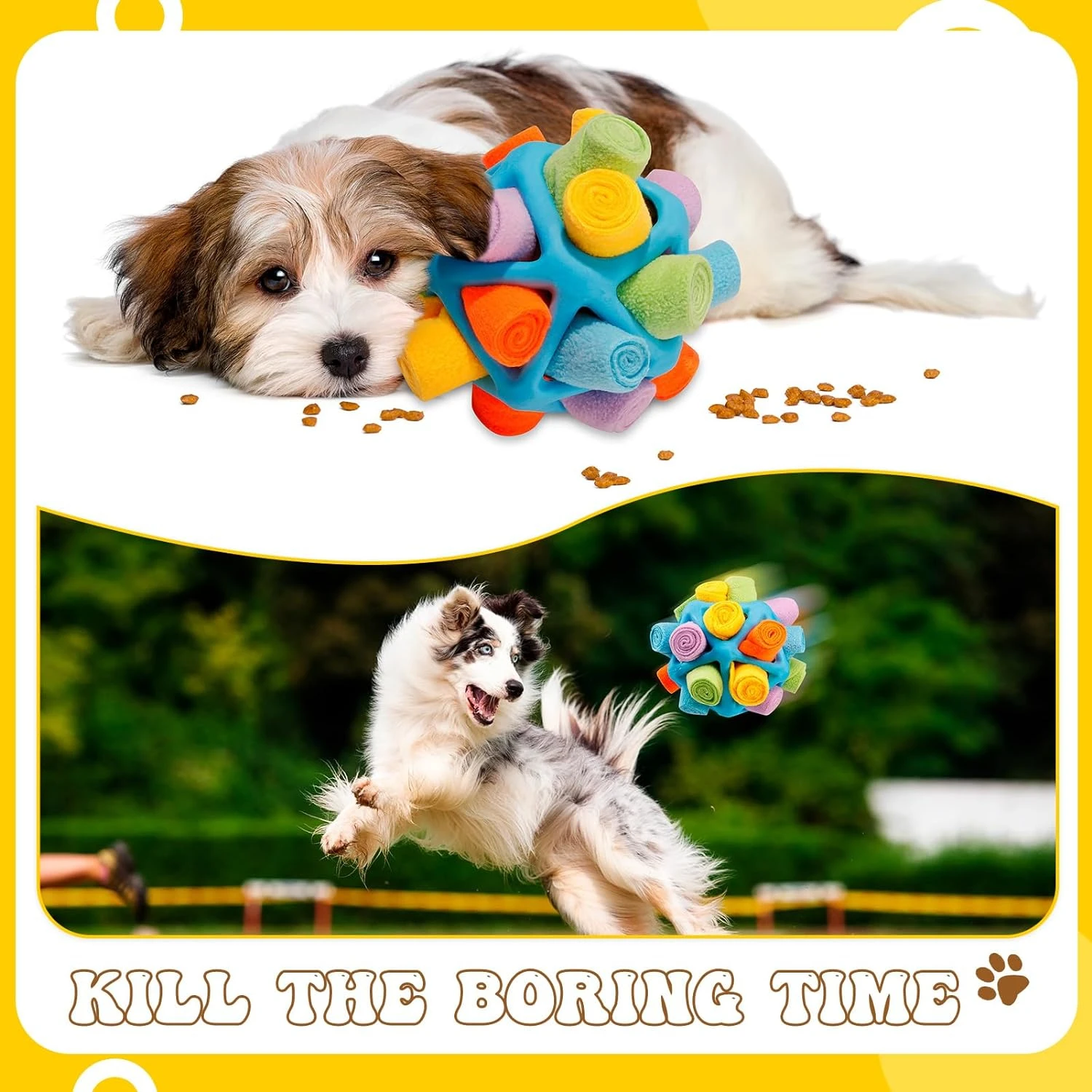 4. Bring out the playful side of your puppy with this vibrant snuffle ball for dogs. The durable construction is perfect for small to medium breeds, providing hours of entertainment for your furry friend.