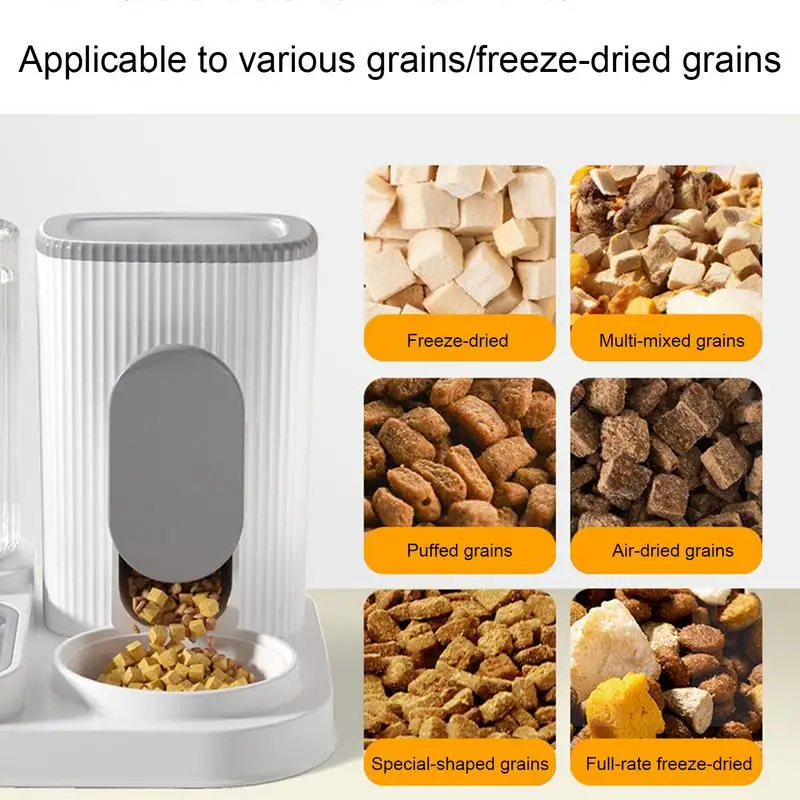 1.More Space for You: Enjoy uninterrupted nourishment with 2400ML dry food capacity and 1300ML water tank that automatically stops at set levels. The moderate-width design ensures smooth food sliding while preventing waste