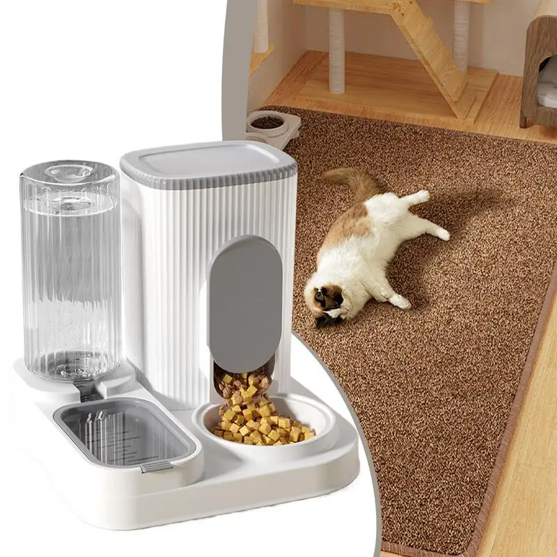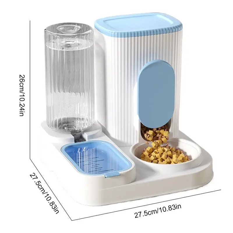 5.Effortless Hygiene Control: Featuring a smartly split frame, this pet feeder dismantles in seconds for easy cleaning with mild water. The accessible compartments enable smooth dry food addition and water refills, promoting lasting cleanliness with minimal effort