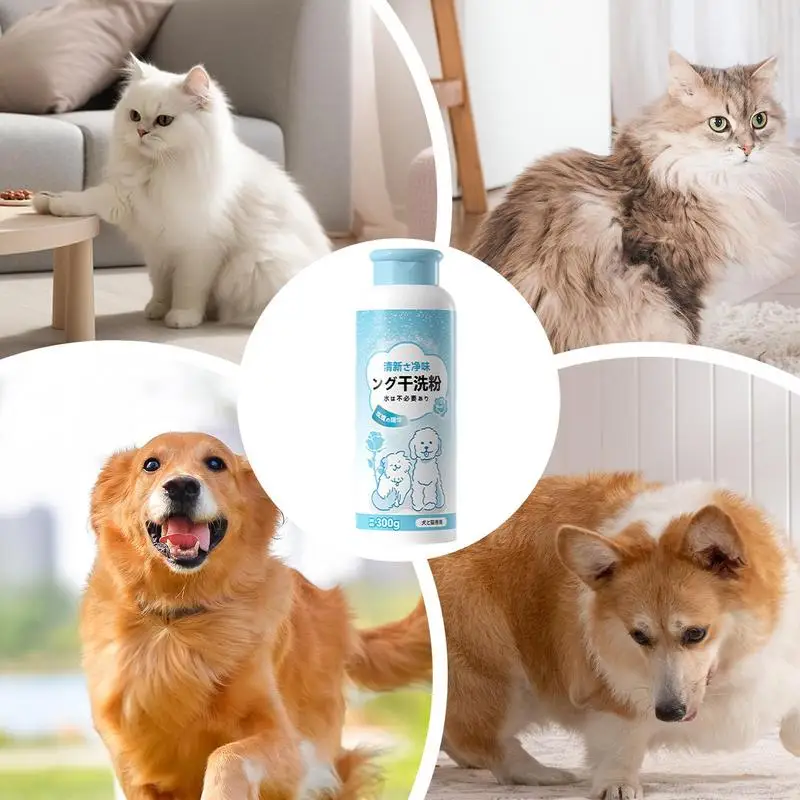 3.Long Lasting Fragrance: Our dry powder shampoo for dogs & cats features natural fragrance ingredients, providing a lightly scented, long-lasting scent that improves the atmosphere of your home and makes your furry companions even more lovable