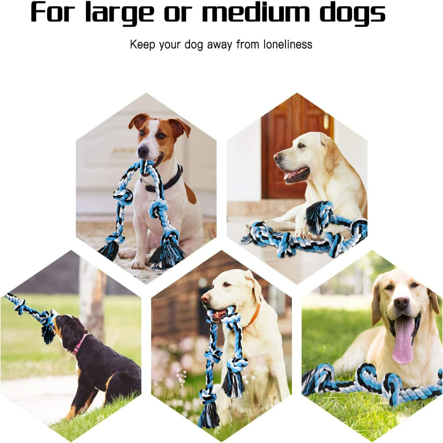 【HEAVY DUTY ROPE】 Multi color with 5 knots,3 feet long,weight 1.65 lbs, intended for large and medium dogs, the knots of the dog chew rope make it easier to bite and chew,even if your dog is an aggressive chewer, the dog rope is strong enough