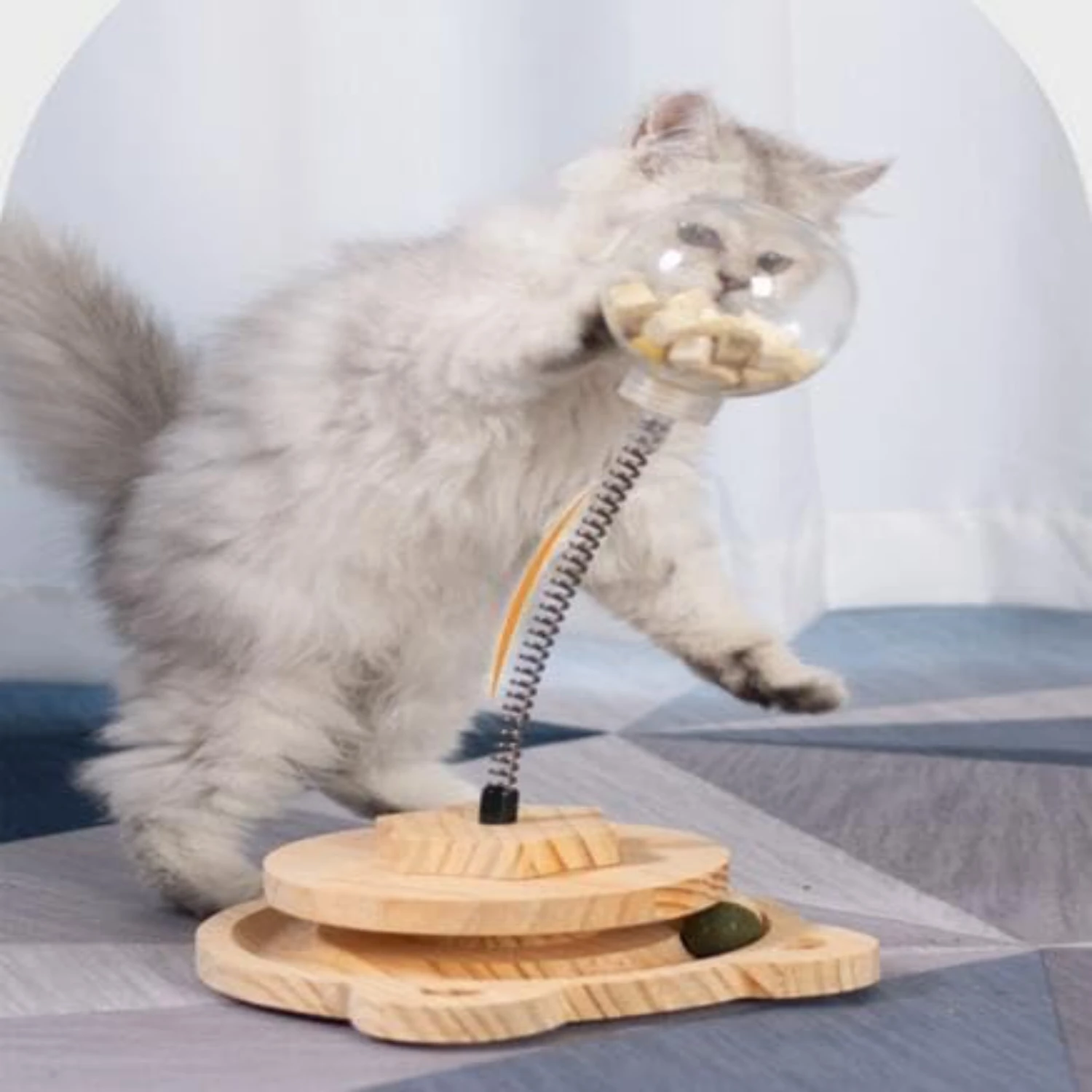 4. Engage your pet’s natural instincts with our Wood Spring Track Pet Toy. This interactive toy provides hours of entertainment and mental stimulation for your furry friend, helping to keep them happy and healthy.