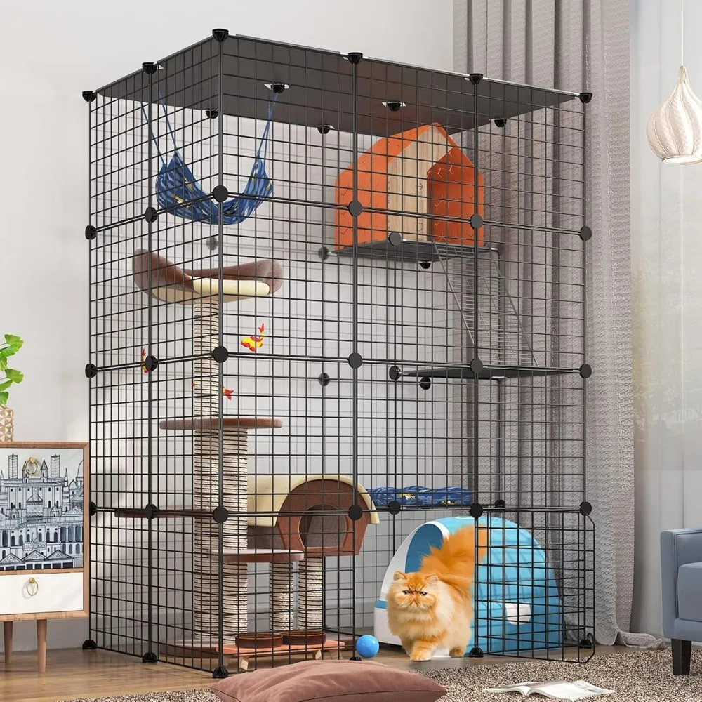 【DIY Layout】Flexibly assemble this cat cage with the abundant panels provided; Tailor make your own cat apartment or decent cat cage that meets your aesthetic, shape or size needs and acts as a safe haven for your kittens.