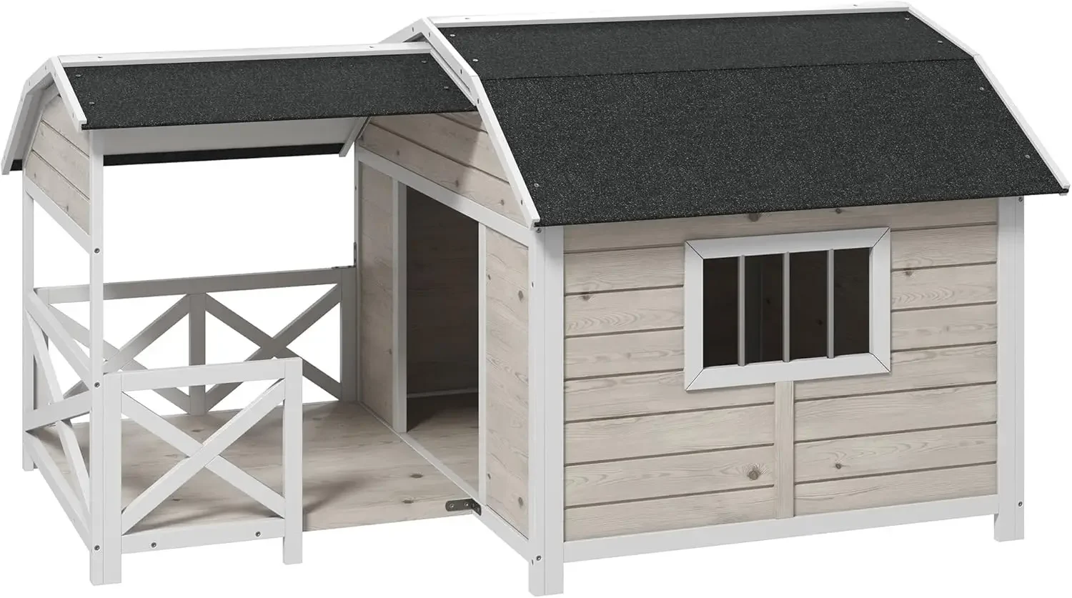 Be the first to review “Wooden Dog House Outdoor with Porch Raised Pet Kennel for Medium Large Dogs with Asphalt Roof Front Door Side Windows Gray” Cancel reply